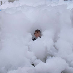Our awesome machine shoots out foam that can fill an area from 20x20 up to 40x40 feet and 5 to 6 feet high in minutes!
