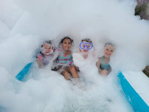 Our awesome machine shoots out foam that can fill an area from 20x20 up to 40x40 feet and 5 to 6 feet high in minutes!